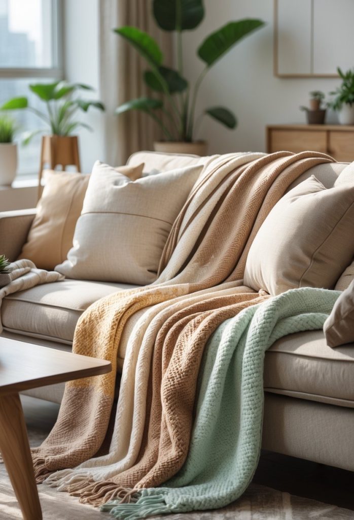 Switch your throws by season—choose chunky ones for winter and lighter ones for summer. This adds texture and warmth to your space in a simple way.