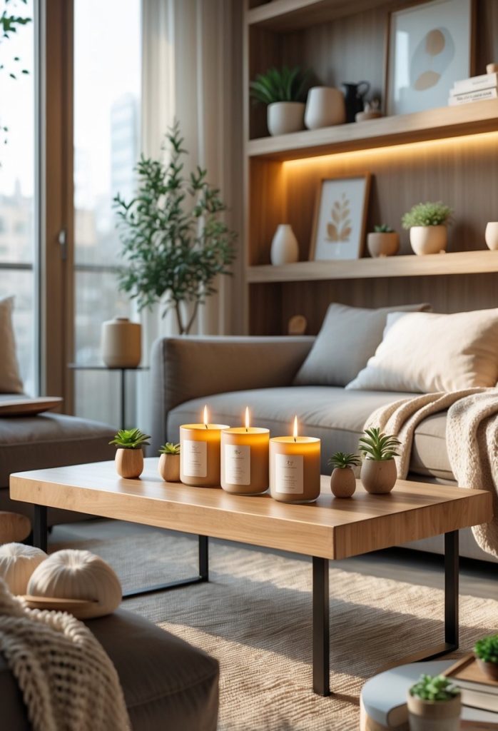 You can add warmth to your apartment by using sandalwood-scented candles. Their soft, woodsy smell creates a calm and cozy atmosphere.