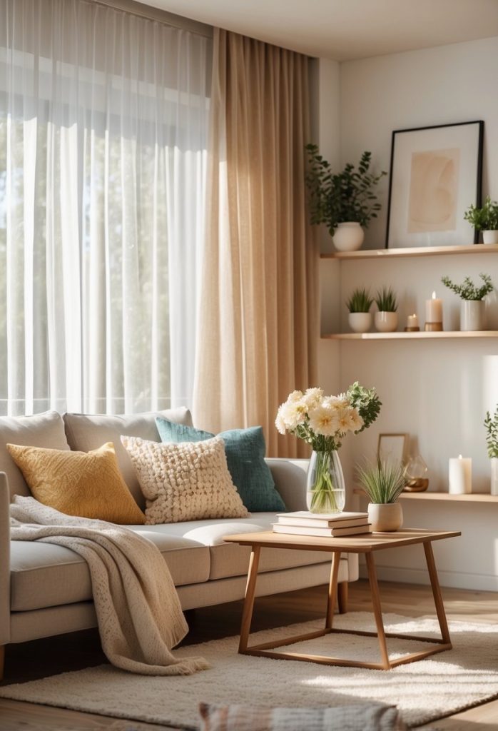 Place fresh flowers or even dried branches in the vases to bring some life and color. These small details help your home feel warm without feeling cluttered.