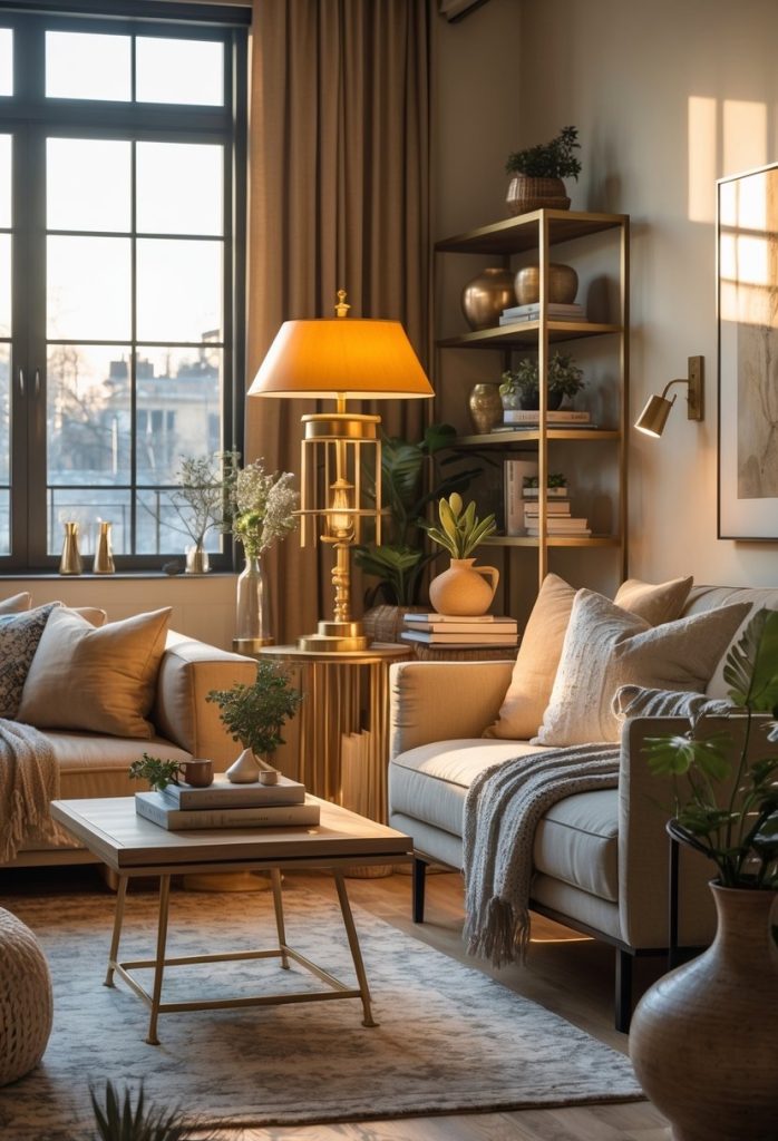 You can add warmth and style by mixing metal accents in your space. Try combining brass lamps with other metals like chrome or nickel. This creates a balanced look that feels modern and cozy.