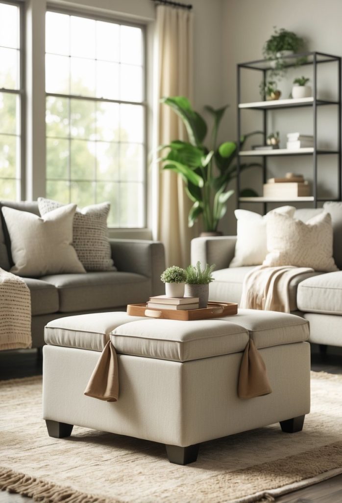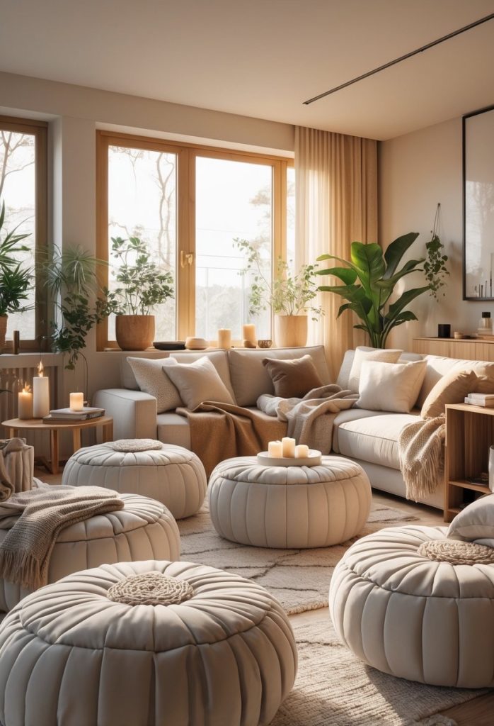 Poufs come in many colors and textures, so choose one that matches your style. They add a cozy look without taking up much space.