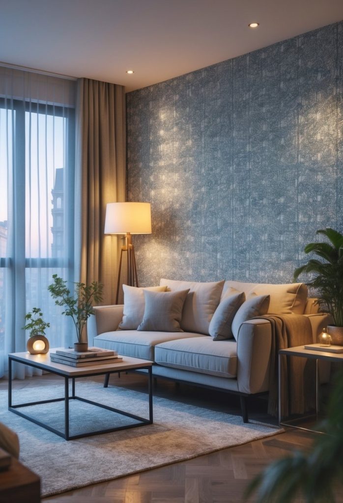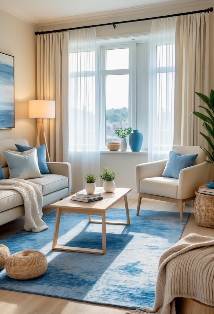 Adding different shades of blue and beige keeps the room interesting without feeling busy. It’s an easy way to make your home feel calm and stylish.