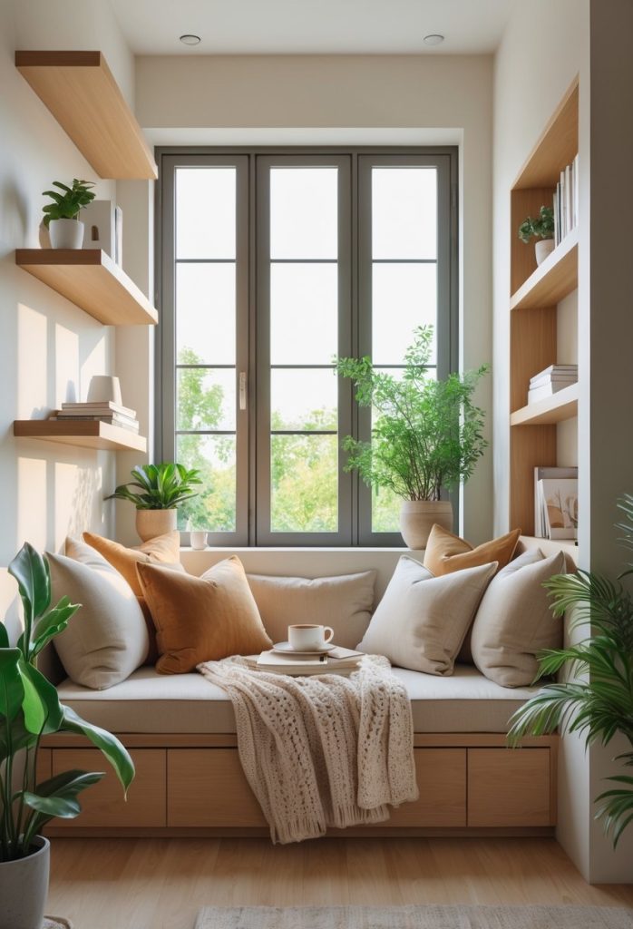 You can add a window seat to your apartment to create a small, comfortable spot for relaxing. Use soft cushions and pillows to make it feel inviting.