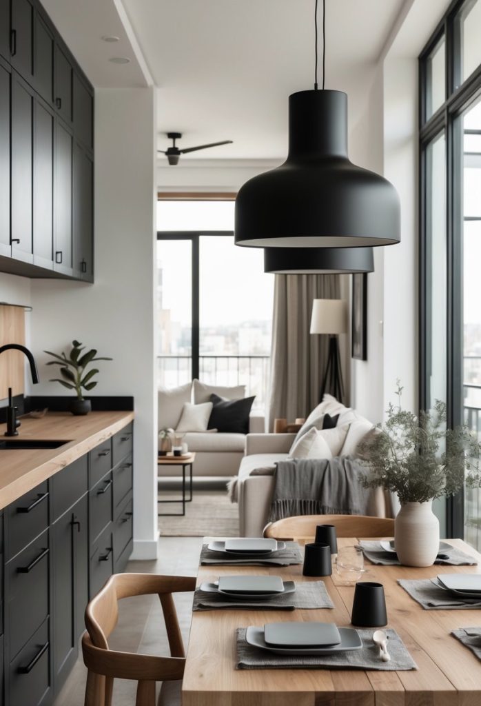 You can add a sleek, modern look to your apartment by choosing matte black fixtures. These work well for things like cabinet handles, light fixtures, and faucets.