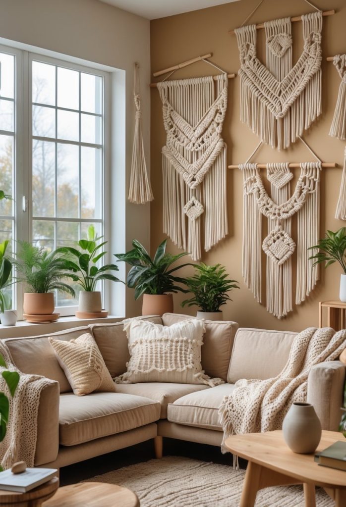 Macramé wall hangings bring a cozy, handmade touch to your space. You don’t need any fancy tools—just some knots and creativity to add texture and charm.