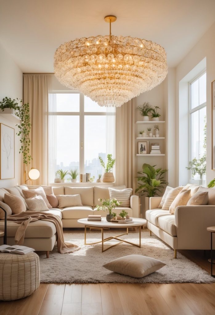 Adding a statement chandelier can change the whole look of your living room. It brings light and style in one simple step.
