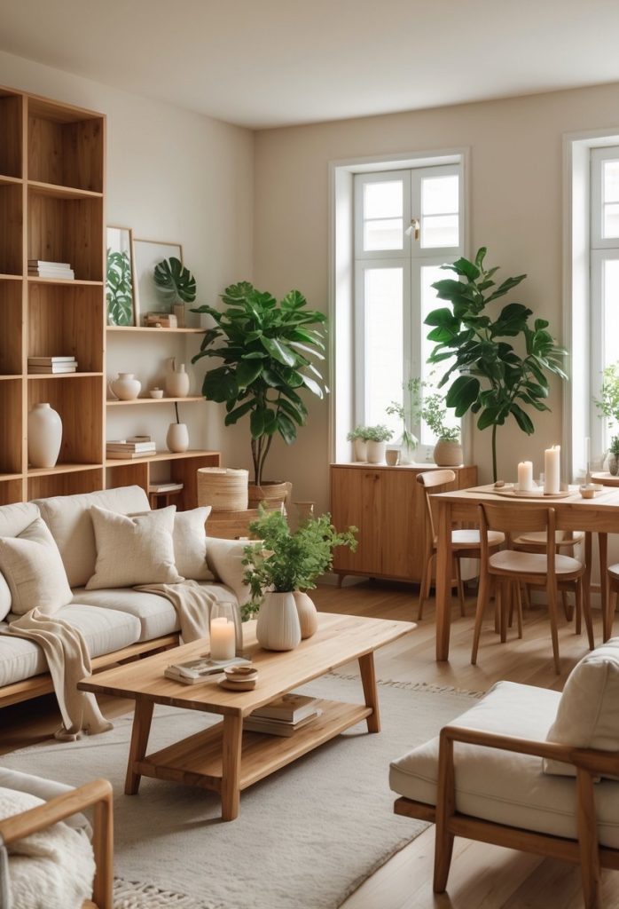 Adding natural wood furniture can bring warmth and texture to your apartment. Pieces like wooden tables, chairs, or shelves create a cozy and inviting feel.