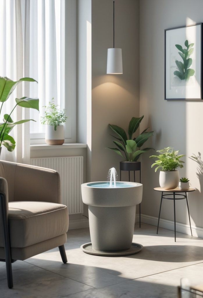 You can add a small indoor fountain to bring calm and beauty to your room. The gentle sound of water helps create a peaceful vibe without taking up much space.