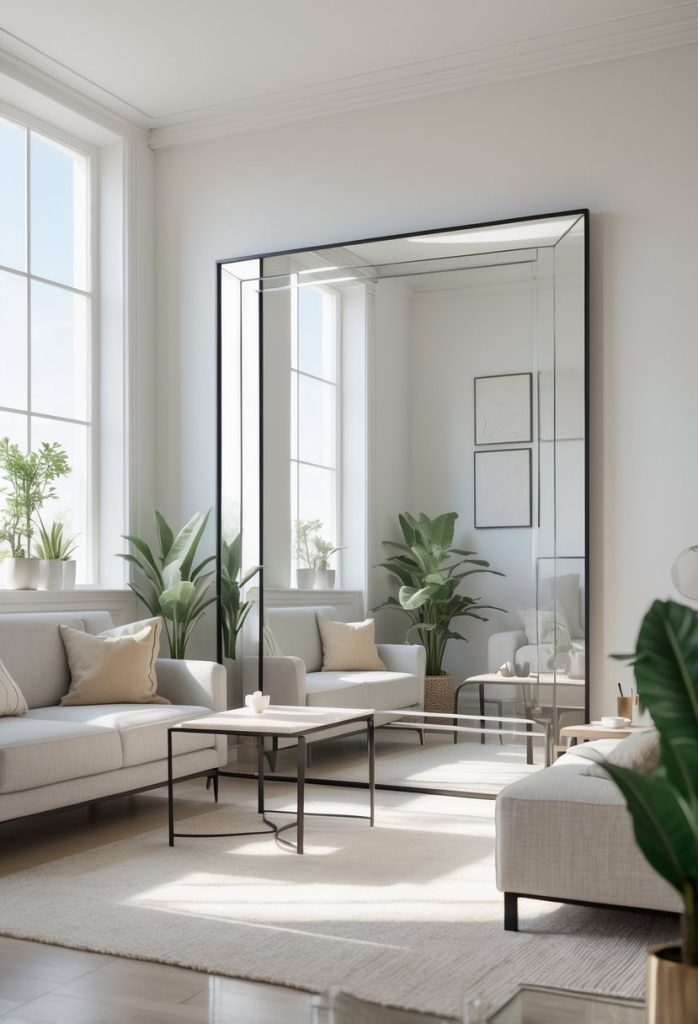 Adding a large mirror to your room can make it feel more open and bright. When you place a mirror across from a window, it reflects natural light and makes the room look wider. Choose a mirror with a simple frame to keep the look clean and modern.