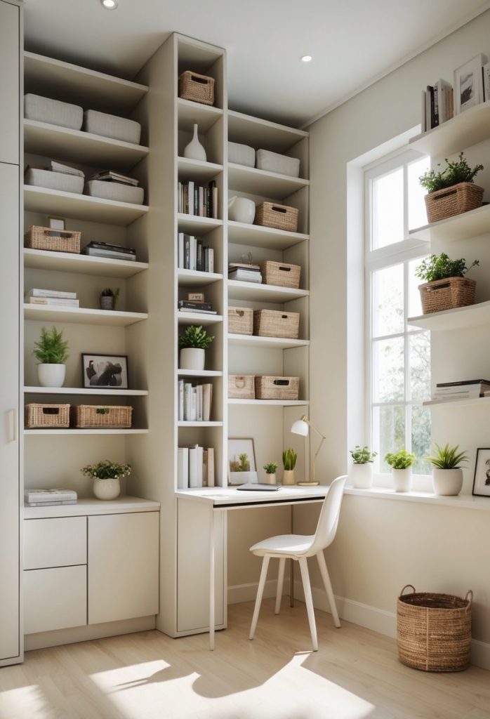Try tall bookcases or wall-mounted cabinets to use height, not just floor space. This keeps your room tidy and easier to move around in.