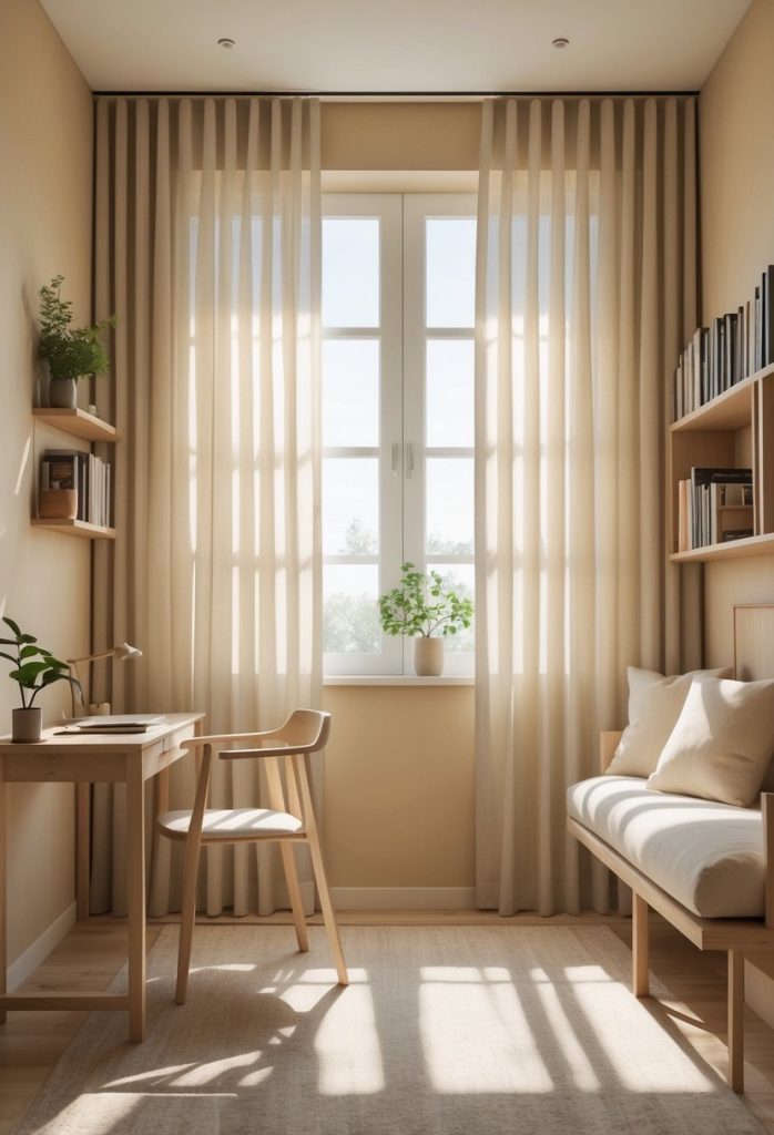 Light-colored curtains help your small room feel brighter and more open. Colors like white, cream, or soft beige let in more natural light.