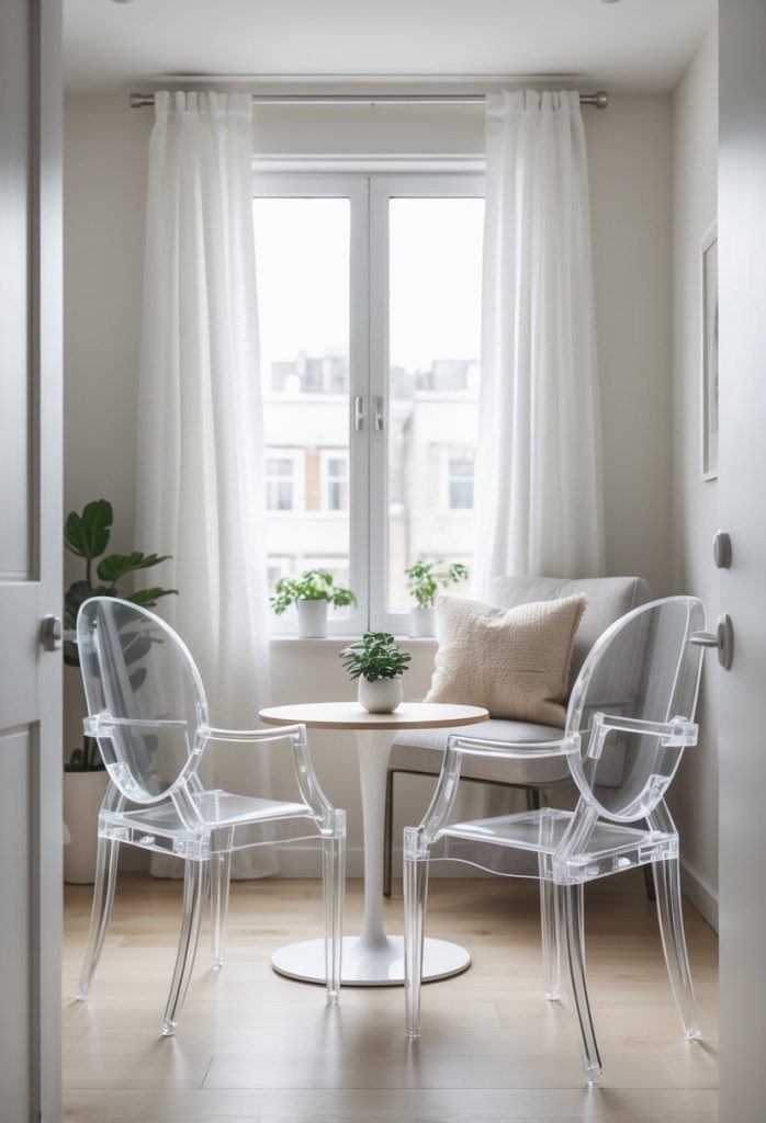 You can make your small room feel bigger by choosing transparent acrylic chairs. They blend into the space without adding visual clutter.