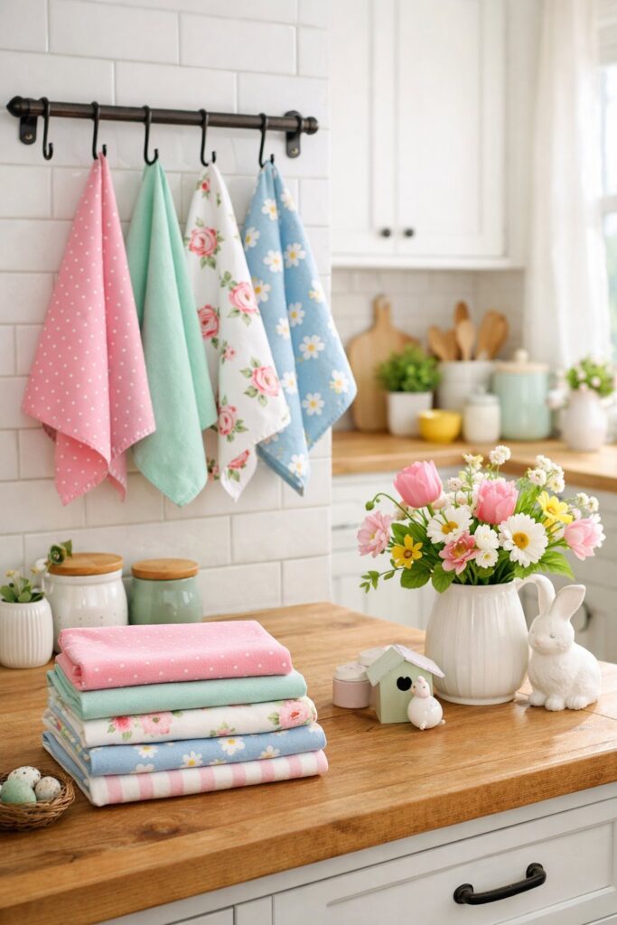 This is one of the easiest and cheapest ways to refresh your kitchen for spring. Simply replace your old towels with new ones in soft pastel shades or floral prints.