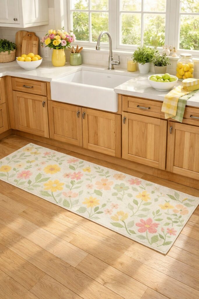 A kitchen runner can change your space without much work. Look for a washable runner in soft spring colors like pale pink, mint green, or light yellow. These colors bring a fresh feeling to your kitchen floor.